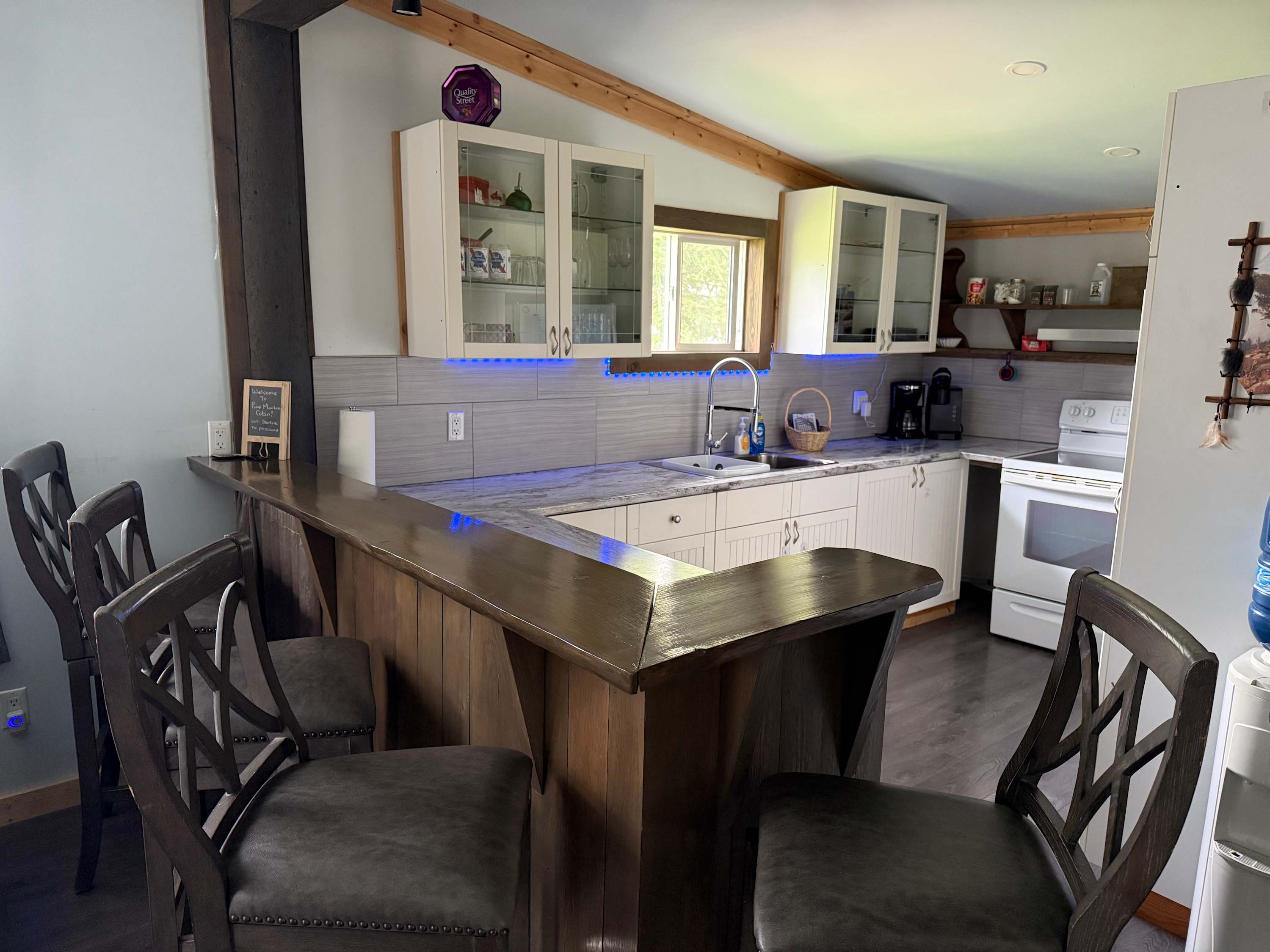 Cozy, quiet cabin that works great as a sledding basecamp. After a long day riding, soak in the private 4-person hot tub, crash in comfy queen beds, or use the sofa bed if needed. The kitchen has all the basics for easy meals between ride days.