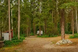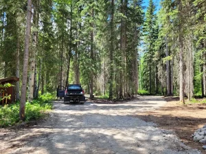 With only 8 campsites, Whispering Forest Campground offers a small, low-key setup — perfect if you’re hauling your own rig and sleds and want space to spread out without crowds.